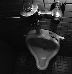 Tania Bruguera transforms Duchamp's Fountain (1917) in the bathroom..