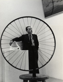 Marcel Duchamp with Bicycle Wheel and Fountain