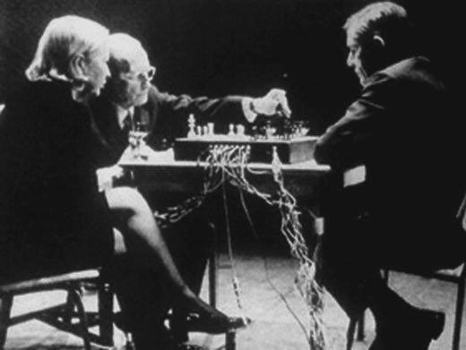 Marcel Duchamp and John Cage playing chess