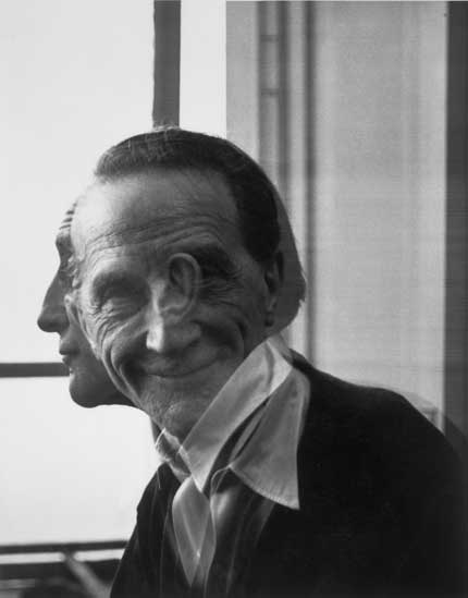 Double exposure portrait of Marcel Duchamp by Victor Obsatz, 1953