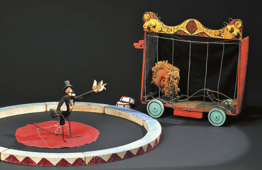 October 13, 2009 The current Alexander Calder exhibition at Toronto's Art Gallery of Ontario is about as light-hearted an affair as you can imagine. Spend a few moments in the projection area where Jean Painlevé's 1953 film of the Calder Circus is on view – a loving document of Calder's miniature, handmade replica of a circus complete with a sword-swallower, a tamed lion, a dancing elephant and trapeze artists made from wire, cloth, rubber hoses, string, bits of wood and other fo.. read more... -