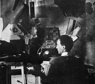 Duchamp in his studio at 67th Street in New York,(detail from a photomontage by Kiesler, Poem about space dedicated to H (ieronymus) Duchamp, published in View, Series V, n° 1, mars 1945)
