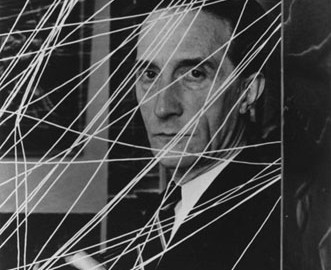 Marcel Duchamp behind his installation of “sixteen miles of string”