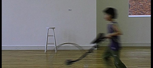 “I’d give it to you if I could but I borrowed it” Guy Ben-Ner, 2007 video still/installation view of deassembling Marcel Duchamp’s Bicycle Wheel