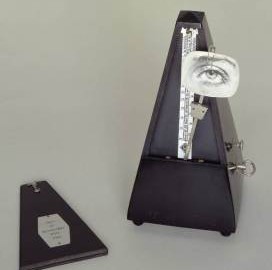 Man Ray’s Indestructible Object featuring a photograph of his lover, also model and photojournalist, Lee Miller’s eye on the metronome
