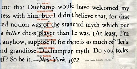 Clipping in the collection of Andrew Roth, bibliophile and occasional Duchamp curator, from his Spring 2010 exhibition of “textual interventions”