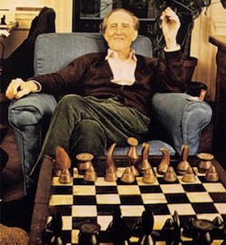 taken in 1966 for Time-Life Books Marcel Duchamp reclines before a chess board made and designed by friend Max Ernst