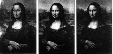 The Duchamp guises of Mona Lisa: L.H.O.O.Q., 1919 (left); L.H.O.O.Q., 1930 (middle) and Mona Lisa by Leonardo Da Vinci, 1504 (right)
