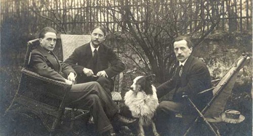 left to right: Marcel Duchamp, Jacques Villon, and Raymond Duchamp-Villon in the garden of Jacques Villon’s studio in Pateaux, France, in 1914. Photographer unknown.